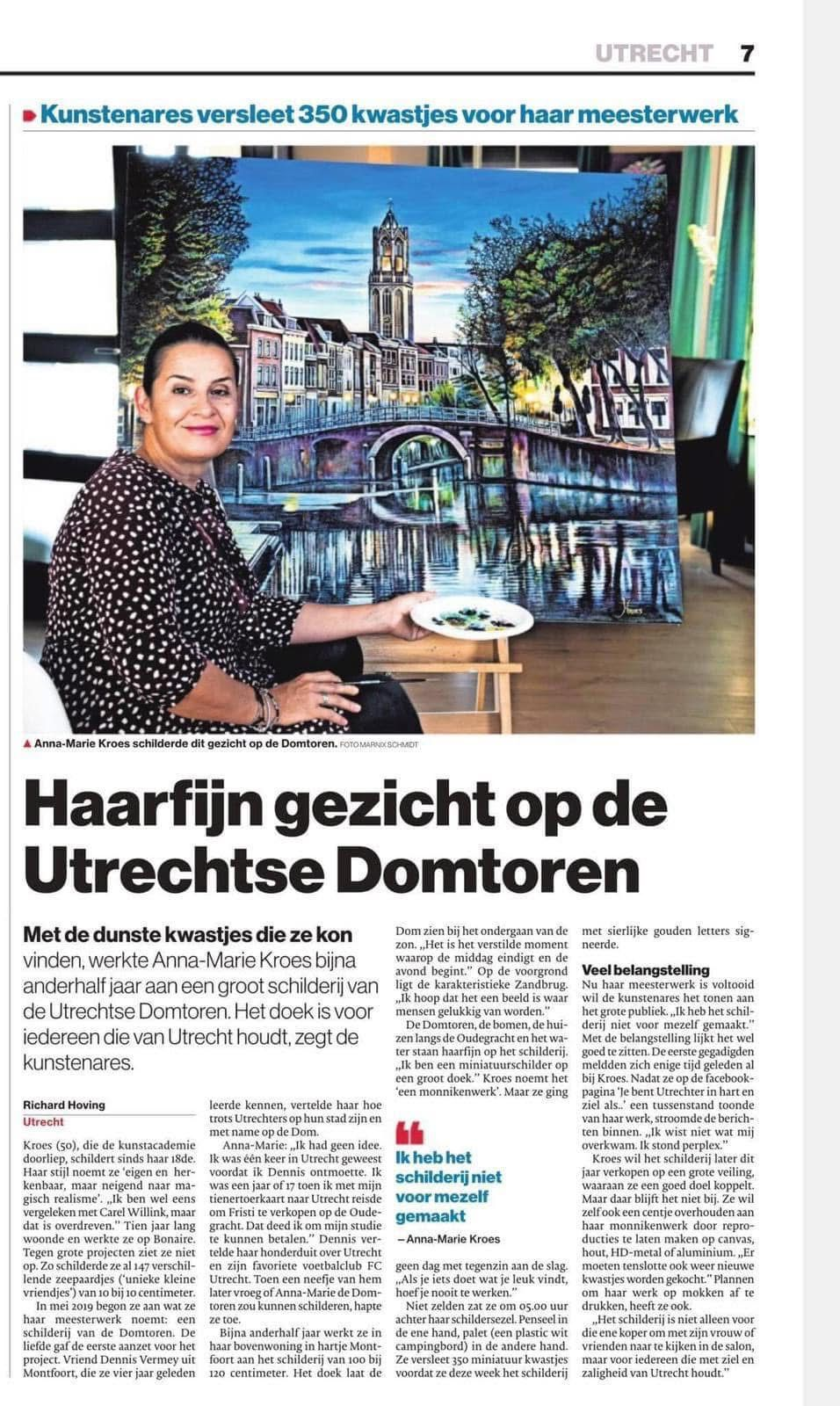 Na jaren van schilderen vond Anna-Marie haar thuis in een klein stadje nabij Utrecht, waar zij zich liet inspireren door de tijdloze schoonheid van de stad en haar iconische toren. Anderhalf jaar werkte zij met een fijn penseel aan het doek van 100 x 120 cm, en op 15 september 2020 zette zij de laatste streek.