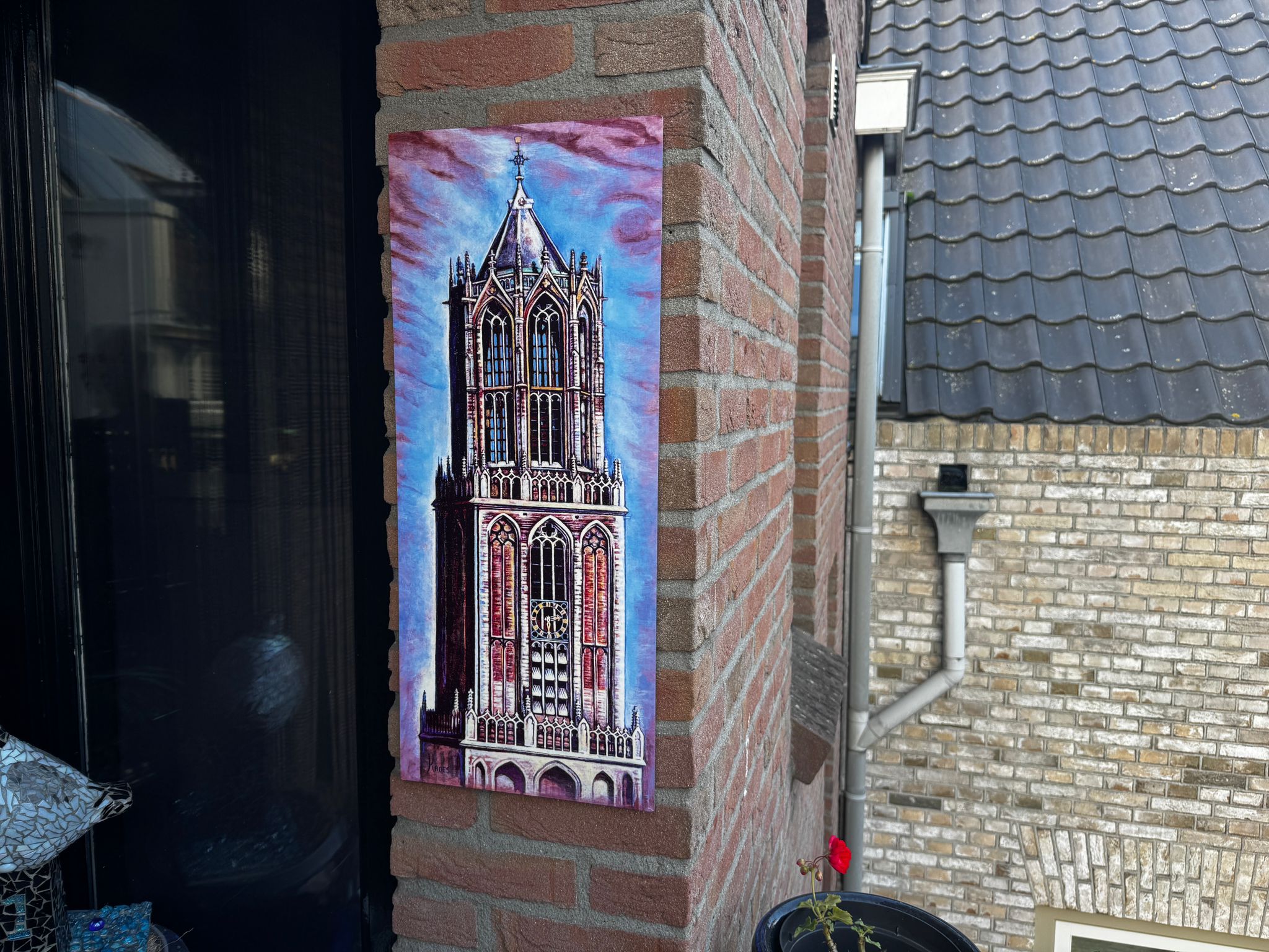 De vorige Domtoren mocht ik door de wetten van perspectief niet al te veel details in verwerken, nou dat heb ik ruimschoots goed gemaakt met deze schoonheid, geschilderd met de allerbest olieverf op een prachtig paneel. Ik hou van hout namelijk. Hout leeft en werkt mee als ik schilder.